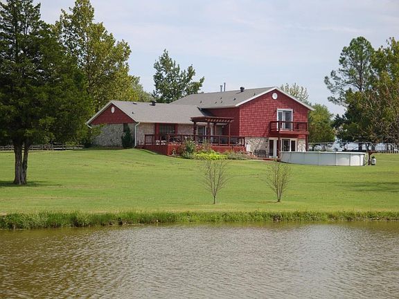 Peaceful and spacious, 4 bed, 3 bath home tucked into an Equestrian Rural Community. Property backs up to Red Earth Horse Training Center. Almost 5 acres of space minutes south of Norman that has a pond with fishing dock, big shop with office space, loft storage, large exterior pad and 2 large overhead doors. Home has large kitchen with solid surface countertops and enough room to add an island. Beautiful back deck hides your storm shelter and is perfect for entertaining or quiet mornings watching the horses train while drinking a cup coffee. Two large living areas one of which features a fireplace and has a pass through for entertaining or family holidays from a buffet that is attached to a large laundry room. This home has SO MUCH storage you wont believe it. Master Suite has its own private balcony to look at the stars before bed!