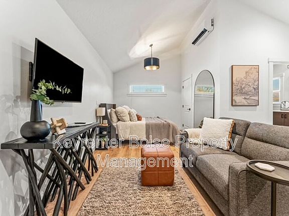 Step into this premier, brand-new, fully furnished 1-bedroom, 1-bathroom studio ADU, where modern design meets comfort. With high/vaulted ceilings and luxury engineered wood flooring, this space feels bright and airy, offering a stylish yet cozy retreat. The kitchen boasts hardwood cabinets, stainless steel appliances, and recessed lighting. The bathroom is finished with tile accents, and the living area includes a TV for your convenience. Stay comfortable year-round with a mini AC and heat split system, and enjoy the practicality of an in-unit washer/dryer. This premier property is dog-friendly (small dogs under 25 pounds welcome!) and perfectly locatedwalkable to Albertsons, Veterans Memorial Park, and just a short distance to the charm of Hyde Park. Whether you're relaxing at home or exploring the neighborhood, this studio offers the perfect blend of luxury and convenience. Don't miss out on this exceptional living opportunity! *The Basics: Landscaping: HOA arranges and pays for all landscape. Lease Term: 3-month initial lease term. Utilities Included with Rent: NONE, Tenant pays a flat monthly utility fee of $200.00, excluding internet. Pets Policy: Small dogs under 25lbs considered with additional screening required; $50 monthly pet rent, $250 one-time pet fee, and $250 additional security deposit per pet. All pets & animals MUST be registered and approved during the application process. *IMPORTANT THINGS YOU SHOULD KNOW: This is a No Smoking rental property. Application processing time is 2-3 business days. Please review Keyrenter's Application Criteria prior to applying. All household members over the age of 18 must complete an application. No sublease/Airbnb etc. Other restrictions may apply per lease contract. Security Deposit: Equal to one month rent + $200. All Keyrenter Boise residents are enrolled in the Resident Benefits Package (RBP) for $50/month which includes renters insurance, HVAC air filter delivery (for applicable properties), pest control service, credit building to help boost your credit score with timely rent payments, $1M Identity Protection, our best-in-class resident rewards program, home buying assistance, and more! More details upon application. Other terms and conditions may apply. All information including advertised rent and other charges are deemed reliable but not guaranteed and are subject to change. Amenities: stainless steel appliances, washer/dryer, fully furnished, tv(s) included, hardwood cabinets, bathroom tile, brand new construction, high/vaulted ceilings, recessed lighting, luxury engineered wood flooring, dog friendly (small dogs under 25 pounds), walkable to albertsons, mini ac and heat split, walkable to veterans memorial park, close to hyde park, studio adu