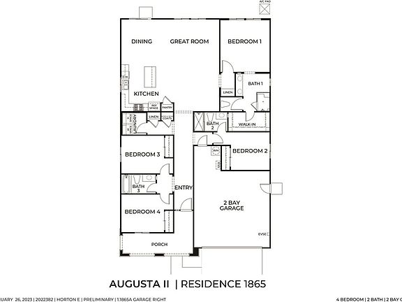 pool, clubhouse, fitness center, junior Olympic lap swimming pool, a splash park, playgrounds, multiple parks and an elementary school. Among the thoughtfully-designed floorplans is this beautiful Residence 1865, single-level home offering 4 bedrooms, 3 full bathrooms, a welcoming, covered porch and stunning, wide entry that flows into an open concept Great Room, Dining and Kitchen with vaulted ceiling, designed for gatherings and entertaining. The upgraded Kitchen leaves little to be desired with large island, beautiful cabinetry, granite counter tops and stainless-steel appliances. The large Primary Suite showcases a beautiful bathroom complete with large, walk-in shower, dual sink vanity with stone counters, and ample walk-in closet. The great backyard space presents a perfect canvas for an ultimate backyard oasis. There are more amazing features such as "Americas Smart Home Technology" for home automation at your fingertips, LED recessed lighting, tank-less water heater and much more!