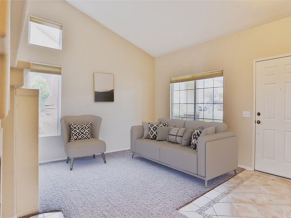 Move in ready single story 3 bedroom, 2 bathroom home in Mountain Gate w/private backyard. The fully landscaped front yard w/palms & quaint front porch invite you into the tiled entryway, vaulted ceilings, an open floor plan + brand new carpet & paint throughout. The formal living room features a 2 way fireplace, built in storage & a lot of natural light. The formal dining room has a mirrored niche that reflects the natural light as it filters in from the family room. The family room is located just off the kitchen & also features a niche for storage. The kitchen features neutral tile floors, crisp white cabinets & matching appliances, beautiful brand new tiger skin granite countertops w/6 in. backsplash, brand new stainless steel sink, faucet & garbage disposal, brand new recessed lighting, huge pantry & informal eating area in the kitchen. The spacious master bedroom features vaulted ceilings & a large closet w/mirrored doors. The master bathroom features custom tile inlayed floors, dual sinks, separate shower & tub, privacy toilet, & 2nd walk in closet. The remaining 2 bedrooms are spacious w/large mirrored closets & share a bathroom w/shower & tub combo. The laundry room is located inside w/direct garage access. The fully landscaped backyard is private w/no neighbors behind you, patio area, & flower beds. Located in a highly desirable location within walking distance to greenbelts, Mountain Gate park, Citrus Hills school, shopping, & easy access to the 91 & 15 fwys.