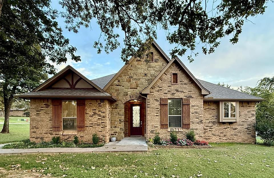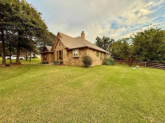 Love the outdoors? This home is the Perfect Get Away! Your new home sits on nearly 3/4 of an acre on a corner homesite with mature trees in a gated community. 3 bed, 2.5 bath with a study. Split open floorpan with tall ceilings & windows with a beautiful view to your cozy outdoor patio with a wood burning fireplace & privacy! Inside you can enjoy your gas log fireplace. White cabinetry throughout the home with striking black granite compliment the space with an elegant feel. A 3 car extended garage make this a great workspace for hobbies. Upgrades include gutters, irrigation system, remote blinds, a storm shelter & shed. Extra bedrooms separated with a jack & Jill bath & a fully tiled shower/tub. The primary suite has an extended space to enjoy & french doors that lead to the back patio. The primary bath boasts an oversized tempered window for more sunlight as you enjoy your Jacuzzi tub, tiled walk in shower, large closet & double vanity!