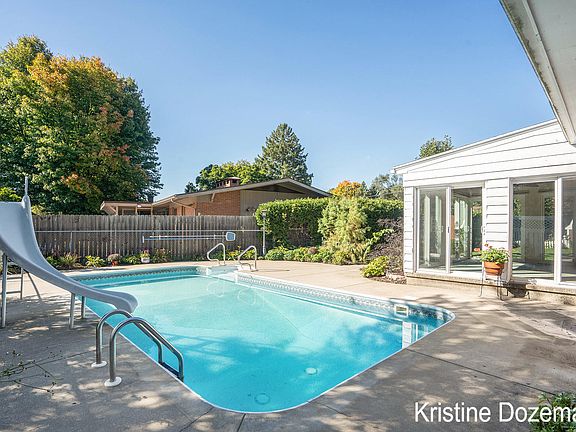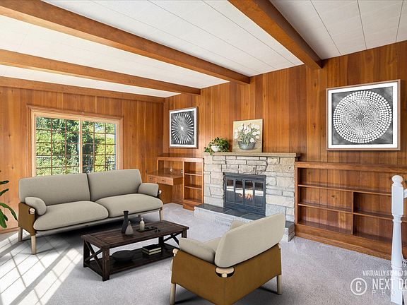 3 fireplaces, 3 bedrooms, 2 full baths / 2 half baths AND A POOL WITH A SLIDE! Every wall painted, every light fixture new. New garage door with remote. Kitchen completely updated -- new cabinets by XXX in 20XX. New carpeting in stairway and lower level. CEDAR CLOSET! Ample closets on main floor, tons of storage on lower level. Nice barn/shed for pool equipment. Two stall attached garage with room for coats and boots. Sliders to FANTASTIC SUN PORCH (knotty pine ceiling) and to pool.
