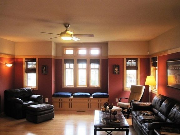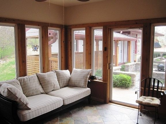Stunning Wright-inspired home in Middleton Hills backs to native prairie & wooded property. Uniquely designed open gathering area w/access to kitchen, dining, & 3-season room. Bright kitchen/dining area features breakfast bar, solid surface counters, & walk-in pantry. Main level also includes master suite w/large walk-in-closet, jetted tub & walk-in tiled shower. Upper level is private ensuite bedroom. LL features 4th bed, full bath, & rec room. Extra 1-bed apt w/private entrance over 3-car garage.