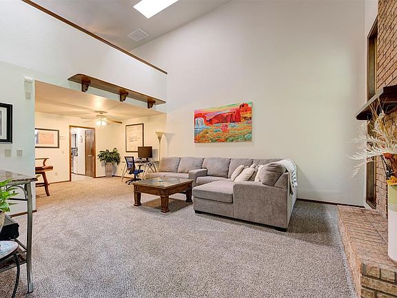 Check out this well maintained Townhome in NW OKC with a GARAGE! Updated throughout with new paint and carpet! One bed/bath on the lower level & upper level! First floor features a 11x11 sunroom. The HOA does a great job maintaining the premises. Pool is only a few steps away - what a great time to cool off in the Oklahoma heat! All new appliances to stay with property.