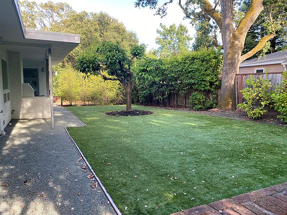 Recently remodeled 4 bedroom 2 bath mid century home with refinished oak floors. 5 minute walk to town, the trail, or to K-8 schools 3 blocks away! Completely fenced in front and backyard with synthetic turf, auto drip system, and space for entertaining. Brand new tiled bathroom with Kohler fixtures and tub. Bright updated kitchen with gas range, ceaserstone counters, new hood, new oak flooring and breakfast nook. Two fireplaces with gas inserts and new plaster surround. Large, open living room and dining room with new contemporary chandelier and access to shaded backyard. Huge family room with new oak floors, lots of storage and built-in shelving. 4th bedroom with carpet and remodeled bathroom. A/C for those hot summer afternoons. Perfect location! Owner pays for Landscaping. Renter responsible for gas, electric, water, and trash. No smoking. 3 parking spaces in the driveway. Single car garage. Washer and dryer located in the garage.