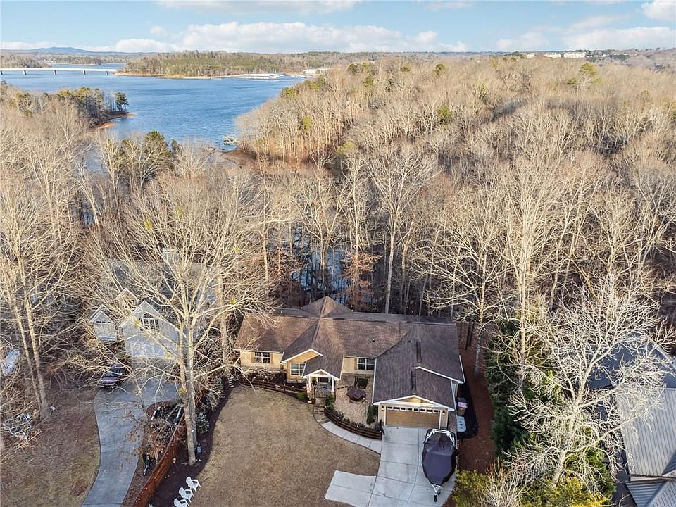 Lake Lanier living at it's best! Craftsman style RANCH home with lots of windows that view the lake, nice natural light throughout. Deep water cove with covered, single slip dock with rooftop party deck. Sit up top and enjoy the long range water views or enjoy a swim in the low traffic, private cove! This home was totally renovated from foundation/studs in 2018. All systems, roof, electric and plumbing replaced. This is a must see! Nice open floor plan with cathedral ceilings, gourmet kitchen, spacious primary bedroom with California Closets. Enjoy the outdoor living space, multi level oversized deck views the lake. Just minutes from 4 boat ramps, downtown Gainesville, convenient to Pelican Pete's lakefront restaurant and Gainesville Marina by water! Enjoy the quiet, dead end street of this Lake Lanier neighborhood!