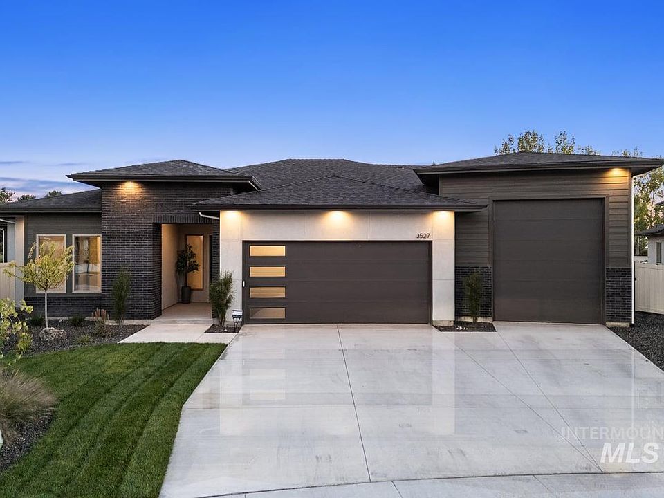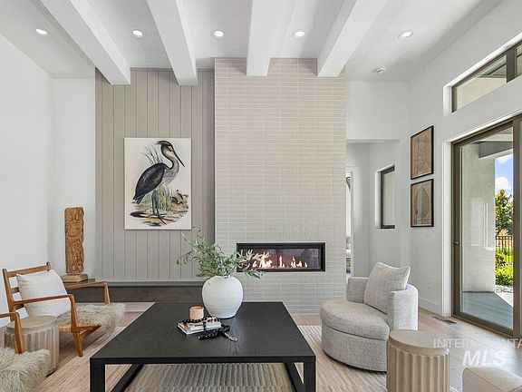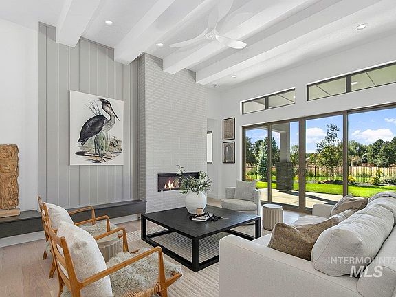 Elegant Modern home built by Zach Evans Construction This stunning home blends modern elegance with warmth and comfort, set on a spacious .382-acre lot that backs to a seasonal stream for added privacy and no backyard neighbors. The oversized 1,300 SF garage includes a 36-foot-deep bay with epoxy floors—perfect for extra storage, vehicles, or toys. Inside, custom accent walls and carefully selected colors showcase the latest in design, while stained trim and beamed ceilings bring warmth and character. The kitchen features a premium Thermador appliance package, including a refrigerator and double ovens. The large, south-facing backyard offers both sunny spaces and shaded retreats, while the front of the home frames beautiful mountain views. Conveniently located in desirable Eagle, ID, this home is just minutes from Eagle State Park and everyday amenities.