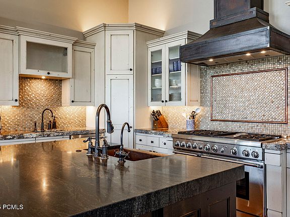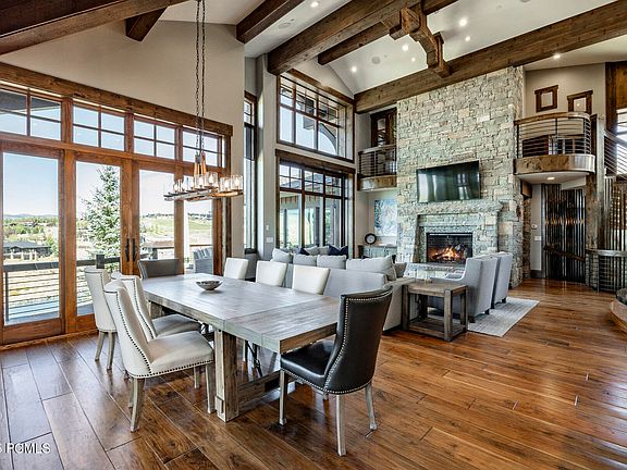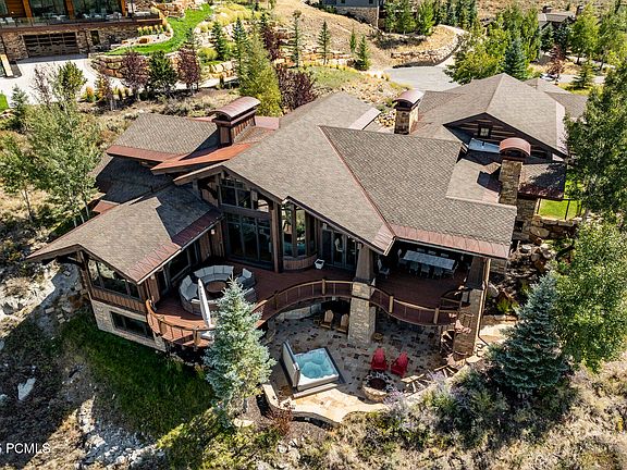 This mountain home boasts an Upwall design that seamlessly blends timeless style with functional comfort. The high ceilings and hardwood floors provide a sense of openness and sophistication throughout the home. Stay warm during those chilly nights with the floor-to-ceiling stone fireplace that serves as a focal point in the main living area. Additionally, heated floors add an extra layer of comfort during colder months. The great room features tall windows and doors flow seamlessly between indoor and outdoor living areas, making the most of Park City's abundant sunshine and fresh mountain air. A chef's kitchen is in the heart of it all, perfect for making a hearty breakfast before the day's adventure, or entertaining family and friends from near and far. The main level features a primary suite offering tranquility and amazing views. The outdoor kitchen is fully equipped for al fresco entertaining, while two firepits keep you warm while watching colorful sunsets. Take a soak in your outdoor spa to unwind after a long day. For pet lovers, there's even a dog run to ensure your four-legged friends feel just as welcome.