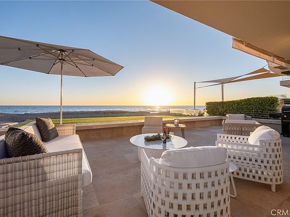Nestled along the sun-kissed shores of Capistrano Beach, this exquisite ocean front residence offers a haven of tranquility within the coveted confines of Beach Road’s exclusive gated community. Boasting four bedrooms and four bathrooms, step inside to an airy open floorplan living and dining area bathed in natural light streaming through the expansive windows. The chic fireplace, limestone flooring and refreshed interiors beckons you to unwind in style. Indulge in outdoor gatherings on the partially covered patio, seamlessly blending indoor and outdoor living with the beach as your backdrop. The chef's kitchen, outfitted with white shaker cabinetry, quartz countertops, island seating, and premium appliances including a Viking range, is a culinary enthusiast's dream. A guest bedroom on the main level offers convenience and privacy with its own separate entrance. Completing the main level are two full baths and a laundry room. An iron railing staircase leads to the serene sanctuary of the upper level. Upstairs, a generously sized primary suite awaits, boasting high ceilings, a sitting area, walk-in closet, private ensuite, and a spacious balcony offering spectacular views of the Pacific Ocean. Two additional guest bedrooms and another full bath in the hallway complete the second level. Additional features of this home include central air conditioning, and a two-car garage with built-in cabinetry. The designer furnishing in each room of the property compliment the space and are included in the sale. Embrace the coastal lifestyle with direct beachfront access and a wealth of amenities just moments away. From world-class resorts to scenic parks, fine dining establishments to upscale shopping destinations, and championship golf courses, experience the epitome of beachside living at its finest.