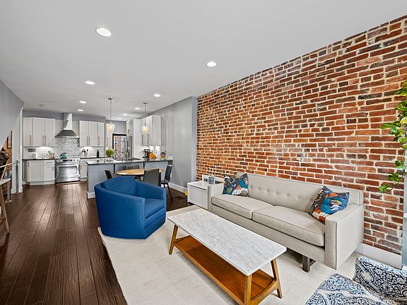This spacious and beautifully appointed home offers three bedroomsincluding two with private en suite bathroomsand three and a half luxurious bathrooms featuring marble finishes and Kohler fixtures. With approximately 2,320 square feet of living space, the residence combines timeless charm with modern convenience. The gourmet kitchen is equipped with high-end Dacor stainless steel appliances, granite countertops, and under-cabinet lightingperfect for both everyday living and entertaining. The primary suite features a spa-like bathroom with a separate jetted soaking tub, a large walk-in shower designed for two with dual showerheads, dual vanities, and a separate enclosed water closet for added privacy. Guests will enjoy the comfort of a full bathroom that also includes dual showerheads. Additional highlights include a spacious recreation room complete with a wet bar and wine refrigerator, exposed 115-year-old brickwork, solid wood doors, gleaming hardwood floors, and recessed lighting throughout. The home includes a washer and dryer, as well as one reserved outdoor parking space with direct access for added convenience.