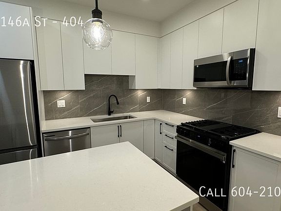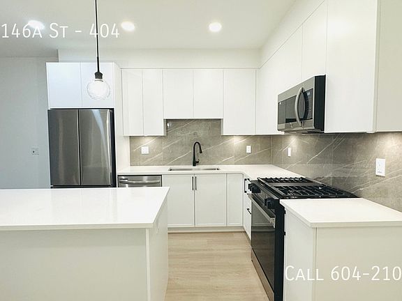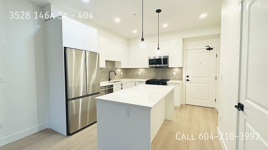 One Year Lease Required Security Deposit: Half Months Rent Pet Deposit: Half Months Rent Discover your brand new 1-bedroom, 1-bathroom condo in South Surrey! This modern unit features an open layout with nine-foot ceilings, stainless steel kitchen appliances, and solid quartz countertops. Enjoy building amenities like a private dining lounge and fitness centre, all while being close to parks, shopping, and public transport. Make this stylish condo your new home today! 1 storage locker included. First three months rent $1900, increases to $2100 after 3 months to book a viewing. Reference the address: "404-3528 146a St"