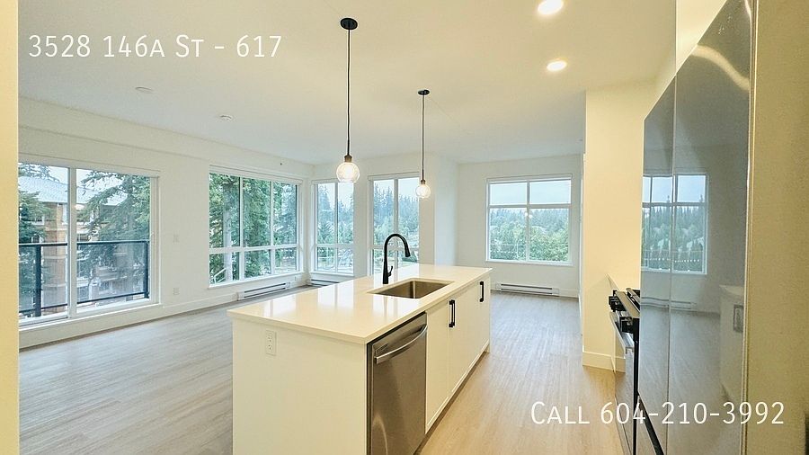 One Year Lease Required Security Deposit: Half Months Rent Pet Deposit: Half Months Rent Discover your brand new 2-bedroom, 1-bathroom condo in South Surrey! This modern unit features an open layout with nine-foot ceilings, stainless steel kitchen appliances, and solid quartz countertops. Enjoy building amenities like a private dining lounge and fitness centre, all while being close to parks, shopping, and public transport. Make this stylish condo your new home today! 1 storage locker included. to book a viewing. Reference the address: "617-3528 146a St"