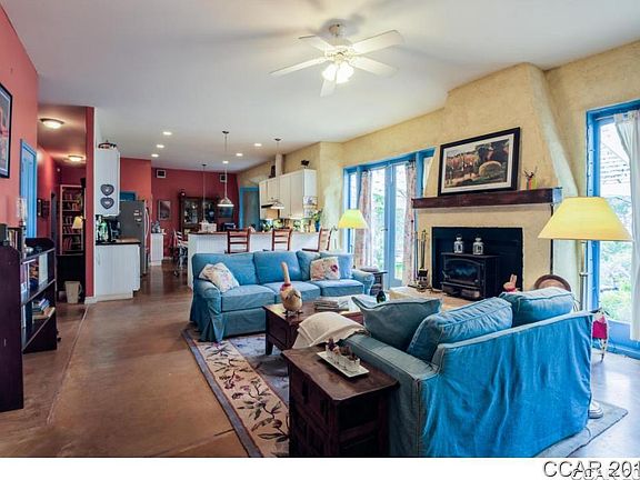 Charming private gated French Country home on 20+ acres w/ sweeping views and seasonal creek. Sustainable, energy efficient, modern home w/ radiant heated floors, attic fans, solar panels, and 2500 gal water storage tank. Gourmet kitchen, spacious living & dining room w/ wood burning fireplace. Large master retreat w/ private sitting area. Small orchard w/ mature fruit trees, walled gardens, chicken coop, & large patio with hot tub. Tranquil estate close to endless recreation.