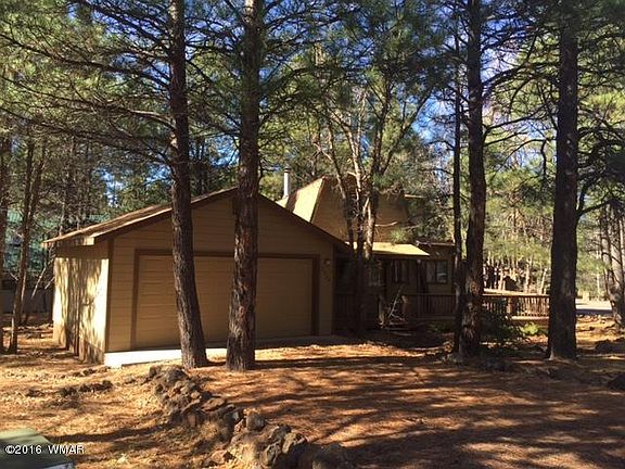 Charming Chalet located in the Pinetop Lakes CC with views of the golf course. Nestled in the trees on a corner lot boasting front and back decks, large 2 car garage, master bedroom down, vaulted ceilings, open floor plan & some of the furnishings will convey. Don't Hesitate!