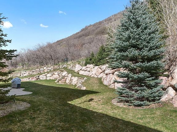 East Layton bench home with remarkable views. Custom design and high-end finishes with 10' ceilings on all three levels. Kitchen features: granite countertops throughout, stainless appliances. Two-tone cabinetry with double oven. Extra-large mother-in-law basement apartment with its own master suite, laundry, kitchen, and outside entrance. 3 car garage and fully landscaped. Other features include a sauna room, exercise room, 2 fireplaces, game room and premier home theater room. A must see!