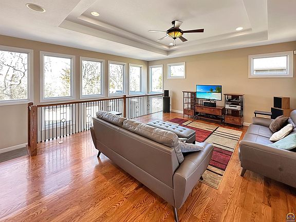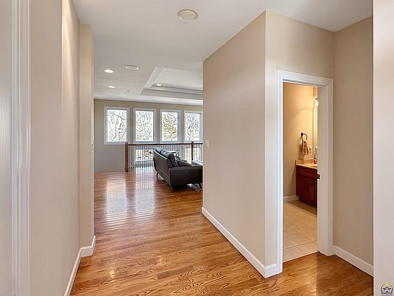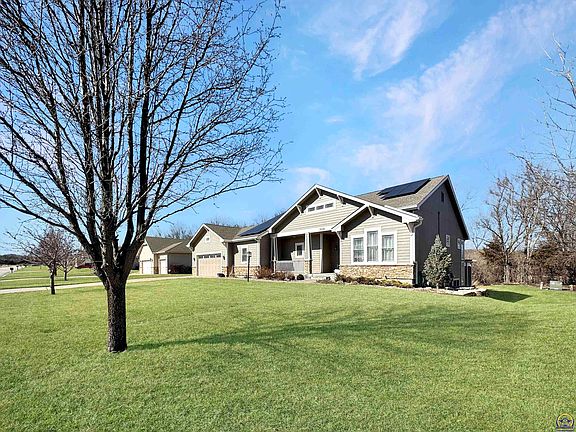 Stunning one owner residence with an abundance of windows welcoming natural light throughout the unrestricted floor plan, a daylight walkout, solar panels with backup battery (paid off!), electric vehicle charger, beautiful ceiling bump-ups, enjoy your own private sauna inside your own primary suite: a true luxurious spa right in your own home, dual sinks, dual closets, pull out kitchen drawers, an opportunity to finish a 4th bedroom in the basement, home built by Mark Boling Construction (Best of Topeka builder), meticulously maintained. Walk out the dining room sliding doors to your own private covered deck or walk down a few steps to the back patio to enjoy an evening outdoors.