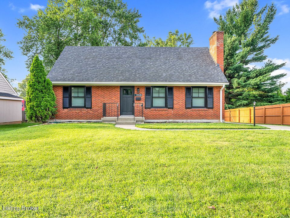 Nestled on a quiet street in the sought-after Broadfield neighborhood of St. Matthews, this fully renovated Cape Cod home is a rare find. Boasting an open floor plan, the home features three spacious bedrooms and 2.5 luxurious bathrooms. The kitchen, an entertainer's dream, is equipped with stainless steel appliances, an antiqued backsplash, and antique brass hardware. The first-floor primary suite offers a serene retreat with an en suite bathroom adorned with deep wood paneling and elegant brass fixtures.