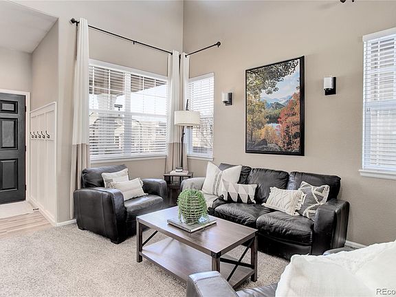 Welcome to this beautiful home in the much sought after Meadows community. Upon entering this lovely home, you'll be impressed with the darling shiplap accent wall with hooks, engineered wood floor entry, vaulted ceiling, newly painted stair rails, lots of windows to allow the natural light to flow in, double sided fireplace, formal living room & the lovely open concept feel. Entertaining will be a delight in the kitchen/family room area. Cozy up in the family room featuring a shiplap accent wall, double sided fireplace w/ built ins & beautiful new chandelier. Extra storage in the coat closet that runs under the stairs. From the family room & kitchen, you'll love easy access to the beautiful grassed back yard (no homes behind) boasting mature trees/shrubs & a custom concrete stamped patio w/ gas fire pit including stone wall for sitting. If you love cooking & entertaining, this kitchen will be a delight w/ pantry, island & dining nook featuring new pendant. Ample cabinet space, stainless steel appliances & silestone solid counters on the island make this kitchen perfect for entertaining. Main level laundry room w/stackable washer/dryer, updated built-in, new shiplap accent wall for your coats & newer barn door. As you head upstairs to the 2nd story, you'll be welcomed by the spacious loft w/built in shelves, currently used as an office, but could easily be a playroom or converted to a bedroom. Down the hall you'll find 2 nicely appointed guest beds, guest bath & spacious primary suite w/bathroom ensuite. The primary suite boasts a beautiful new barn door adding more privacy, freshly painted bathroom w/ newly painted cabinets, double sink vanity & walk in closet. The Meadows neighborhood has multiple swimming pools, tennis courts, trails, close to I-25, Castle Rock Adventist Hospital, dining, the outlet mall & so many amenities. Concrete tile roof, ring doorbell included, MyQ Bluetooth garage opener & much more. Minutes to downtown Castle Rock & 20 mins to the DTC.