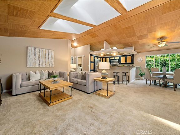Absolutely Charming Ivey Ranch Golf Course 55+ Community Home with 2 bedrooms and 2 bathrooms with 1586 SF of living space. In a neighborhood of manufactured homes this home feels like a stick built home, complete with vaulted ceilings, skylights, bamboo floors in the foyer, guest bathroom, laundry room and in the upgraded kitchen. The huge primary bedroom boasts cathedral ceilings, tons of closet space, a separate door to a private outdoor patio area framed by producing lemon and grapefruit trees. The ensuite bathroom has dual vanities, a soaking tub and stand-up shower. You will love entertaining your guests in the open concept living room and dining area connected to the chefs kitchen with granite countertops, an abundance of custom cabinets and stainless steel appliances, including a full sized refrigerator. The living room opens to your private covered patio area adorned with a misting system to keep you cool. Separate inside laundry room includes a washer and dryer. Central AC, ceiling fans in both bedrooms and dining room, and dual paned windows throughout, will keep you cool year round. The Direct Access Two car garage and parking on the driveway will satisfy all of your vehicle and golf cart parking needs. Ivey Ranch is a gated, senior community of manufactured homes with a 9 hole, SCGA rated, golf course, Pro-shop, Driving Range, 4 community pools, 2 community spas, Club house and a seasonal restaurant. You own the land in Ivey Ranch.