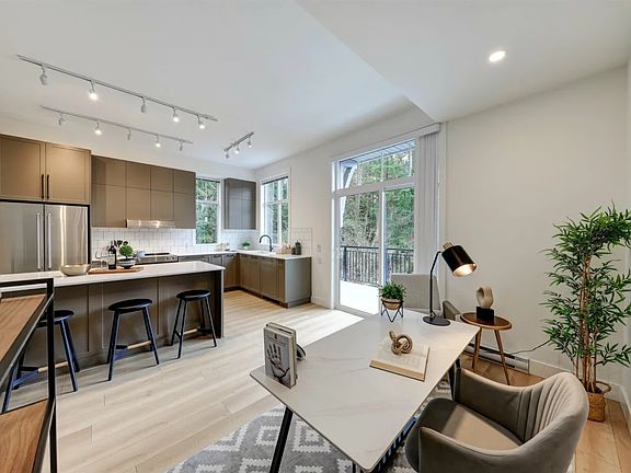 Welcome to 153 3529 Baycrest Ave, Coquitlam! This rental opportunity offers the top two floors of a beautiful home, providing over 1,687 sq. ft. of indoor living space along with a 100 sq. ft. private balcony and a 250 sq. ft. front yard for relaxation and entertainment purposes. Features of this rental include: - 2 full floors (Main & Upper) - 3 spacious bedrooms and 2.5 bathrooms - Modern kitchen with breakfast nook and large dining/living area - Private balcony with serene views, perfect for morning coffee - In-suite laundry - Abundant natural light throughout - Corner unit surrounded by a green belt for privacy - Separate entrance accessed from the main front yard - Additional outdoor space with a 250 sq. ft. front yard Uniquely nestled in Coquitlam's Burke Mountain community, this unit boasts shingle-style architecture that seamlessly blends into its natural surroundings. The open-concept main floor features 10' ceilings, offering a tranquil space to unwind and enjoy the peaceful environment. Parking is conveniently available on the street, with garage access excluded from the rental agreement. Located in a quiet and family-friendly neighborhood, this home provides easy access to trails, schools, and shopping, as well as quick commuting options to major routes and transit. Notable details: - Basement and garage are not included in the rental agreement - Rent: $4100 per month - Utilities split 70/30 between tenant and landlord - Available starting June 1, 2025 A thorough screening process will be conducted, including background and credit checks, as well as proof of income verification. Tenant insurance is required. utility shared 70 tenant / 30 owner