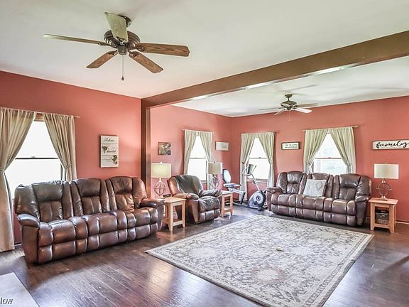 Tucked away down a long driveway, this fantastic colonial sits on 8 acres of beautiful land. With a spacious layout, it's perfect for everyday living and entertaining. The living room features a beamed ceiling and a cozy wood-burning fireplace, flowing openly into the kitchen. The kitchen offers plenty of space for meals, including a breakfast bar, tons of cabinets, and counter space. There's also a bonus room nearby that's great for a home office. Down the hall, you'll find a guest bathroom and a laundry room that serves as extra pantry storage. Upstairs, all 4 bedrooms await, including a master suite with a full bathroom featuring double sinks, a jetted tub, and a walk-in shower. Other bedrooms share another full bathroom off the hall. Relax on the front porch or covered rear deck, both perfect spots to enjoy the peaceful surroundings, including a view of the wildlife and woods. Recent updates include a new steel roof, furnace, and A/C. If you're looking for a private setting surrou
