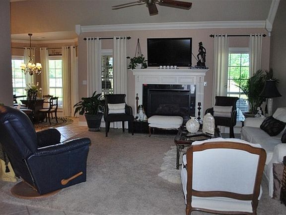 Beautiful home sitting on gorgeous Sage Meadows golf course on the number three tee! Five bedrooms and three full baths. Open floor plan with plenty of room to entertain. Fireplace can be viewed from family area and large kitchen. Huge screened in porch gives you another area to relax. The fifth bedroom upstairs over garage could be used as a bonus room. All electric home except for gas log fireplace. Four large bedrooms on main floor as well as three full baths bedrooms are a split plan. The floor plan is very open with living room, dining room, kitchen and breakfast area. Extensive crown molding including garage. This home has experienced a complete make over by the current owner and is in movein condition! The 11 by 14 screened porch hosts sun screens that make watching golfers easy and cool. Attic is floored over garage for abundance of storage. Seller added 12 inches of cellulose insulation last year. Master suite hosts jetted tub, tile shower and double vanity. The seller will replace light fixture in breakfast room with similar fixture.