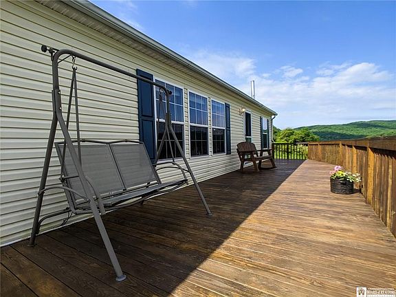 This Raised Ranch home with 3 bedrooms on the first floor and a possible 4th in the basement and comes with about two acres of land with amazing hill views, a great front porch, newer construction, and a spacious yard with some flat areas. The Cattaraugus County four-wheeler and snowmobile trails are up at the end of this dead end road. The main living area features an open floor plan with a formal dining area, a laundry room, access to the backyard and the front porch, and the master suite. The basement is partially finished with a family room/rec room area with one full bathroom, a wood stove, and a bonus room/possible bedroom. The other half is an under house two-car attached garage.