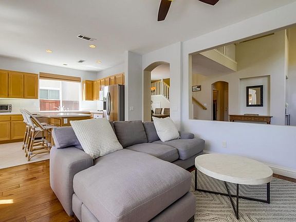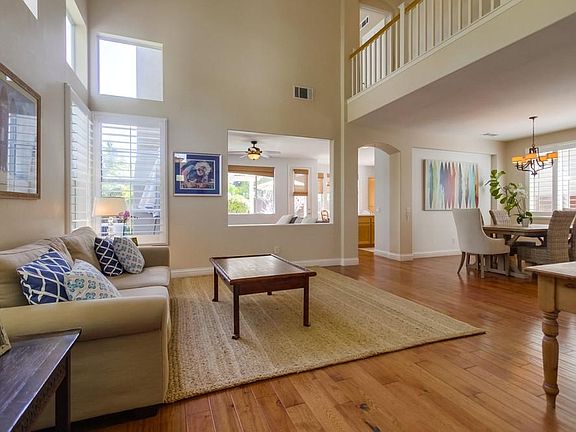 Terrific home in excellent neighborhood and highly rated school district. Recently painted, new carpet, hardwood floors, finished garage, and more! *Four bedrooms (all upstairs). 1 master, 3 standard size rooms *2 full bathrooms (upstairs), 1 half (downstairs) *Master suite features soaring ceilings, soaking tub and shower, walk-in closet, mountain views *Finished garage with ample storage, epoxy floor - can be used as bonus room *Includes access to lovely community pool and jacuzzi, club house *1.5 miles or so to highly rated LaCosta Meadows Elementary school *5 miles to best Carlsbad beaches *Gorgeous hardwood floor throughout downstairs, new carpet upstairs *New paint (note: some of these photos are older and do not show the new paint) *South facing backyard gets all day sun *Good sized backyard with lawn and play area. Backyard slope could accommodate vegetable garden *Bright and airy home throughout *Save on utilities! Solar Power included in lease! *Landlord pays HOA, gardener, and solar power! Requirements: *Tenant must have 3x monthly rent in income *680+ credit score *Background check *Good, professional references Owner pays: HOA Gardener Solar Power