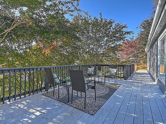 Captivating views outside, stunning updates inside! Discover your dream retreat in this beautifully renovated hillside home, situated on a generous lot with sweeping mountain views and a back view of Fort Patrick Henry Lake. This move-in-ready home offers the perfect balance of comfort and style, with an array of modern updates, including fresh paint, new lighting, and new, durable, hardwood-style flooring throughout. The comfortable living room welcomes you with a striking stone floor-to-ceiling fireplace and built-in shelving and leads to the spacious, brightly lit dining area. The heart of the home, a newly updated kitchen, features elegant cabinetry, luxury granite countertops, sparkling stainless-steel appliances, a bright white backsplash, and contemporary lighting and fixtures. The kitchen is designed for seamless entertaining and effortless conversation with guests relaxing in the living room. The primary suite is a true retreat, boasting a walk-in closet and a spacious en suite bathroom complete with a separate shower and soaking tub. Adjacent to the bedroom, a beautiful sunroom with a soaring vaulted ceiling opens onto the brand-new deck, perfect for enjoying serene views and relaxing moments overlooking the front lawn. The property also features a newly constructed retaining wall behind the home. Don't miss the opportunity to call this mountain-view sanctuary your own - schedule a tour today!