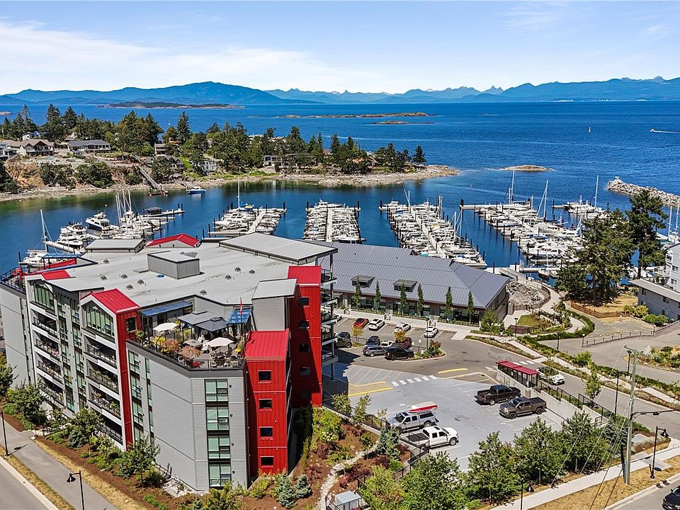 Perched above it all, this sun-drenched penthouse offers impressive ocean & Schooner Cove Marina views from inside & from the expansive rooftop patio & front-facing deck. Located in a sought-after building, this rare home features 2 bdrms plus a den, 2 baths, & over 1,000 sq ft of private outdoor space designed for elevated coastal living. Inside a white designer kitchen with quartz countertops, tile backsplash, & large island anchors the open-concept living & dining area with floor-to-ceiling windows & gas fireplace. Off the kitchen, access leads directly to the generous rooftop patio—exclusive to the penthouse. Both bedrooms boast floor-to-ceiling windows & direct access to the front-facing deck with stunning views. The spacious primary includes a walk-in closet w/organizer & a spa-like 4 pce ensuite. Steps from beaches, trails, the vibrant marina, world-class golf, wellness centre, & Nanoose Bay Café, this is a rare chance to own one of Vancouver Island’s most impressive penthouses.