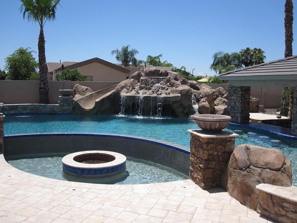 Beautiful remodel in the popular Hermosa Groves neighborhood. An outdoor paradise with a large diving pool, swim up bar and rock grotto slide. Citrus trees, fire pit, putting green, large RV gate and RV storage pad. North/South facing house on 3/4 acre with irrigation and gourmet upgraded kitchen. Large covered patio, new flooring, paint, newly resurfaced and updated pool. New stainless steel appliances, cabinets, granite counter tops. Upgraded bathrooms and lighting. Popular split floor plan with the master and office on one side and four bedrooms two bathrooms on the other. Must see to appreciate.