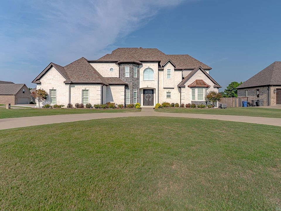 Welcome to Market 3529 Farmington Dr. of the Barrington Park Sub. in Jonesboro, AR within the Valley View School District. Situated on a .38 +/- privacy fenced corner lot w/ circle drive is a Jim Abel 2020 built Modern French Country style home, wrapped in brick, topped w/ architectural shingles and accented by a stone turret, side entry garage, sunroom, ornate front doors, guttering, and lavish landscaping. The interior features 3,218 sf of well laid out living space over 2 floors. The main level features: a living room w/ soaring ceiling, electric fireplace w/ stone surround, chandelier and access to the sunroom, an eat-in kitchen w/ stainless steel appliances, and pantry, secondary kitchen, and dining room. The Master suite holds an en-suite w/ walk-in shower, jet tub, dual vanity, and walk-in closets. The 1st upstairs wing is a bedroom w/ 2 closets and en-suite w/ shower/tub combo and the 2nd upstairs wing features a spacious landing w/ 2 bedrooms and full bathroom w/ shower tub combo. You'll love the tile & hardwood flooring, high end fixtures, and quartz countertops. Conveniently located near local amenities. Call today to schedule your tour and make this house your home.
