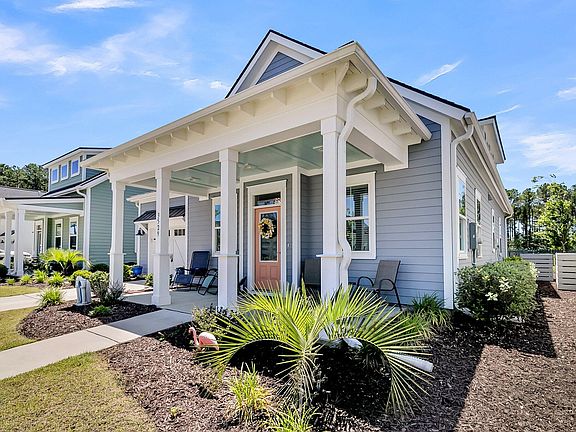 3529 Habernaria Road is a newly constructed single-story cottage-style home located in the 55+ community of The Cottages at Carolina Park in Mount Pleasant, SC. Built in 2021, this 2-bedroom, 2.5-bathroom residence offers 1,665 square feet of living space. The open-concept design features high ceilings, large windows, and a chef's kitchen with a central island, pantry, and eat-in dining area. The primary suite includes a walk-in closet, multiple closets, and access to the outdoor patio. dditional highlights include a dedicated office/flex room, smooth ceilings, tray ceilings, and ceramic tile flooring. The home is equipped with natural gas heating, central air conditioning, and a tankless water heater. Exterior features include a covered front porch, rain gutters, lawn irrigation,and storm windows. The property is situated on a 0.01-acre lot with pond views. Residents enjoy lawn maintenance and a 10-year warranty. The home is within walking distance to Carolina Park Elementary School and is conveniently located near shopping, dining, and medical facilities.