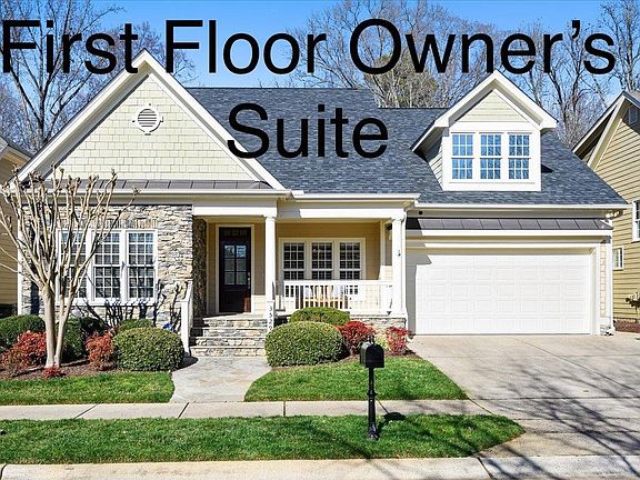 Enjoy first floor living in beautiful Bedford! Meticulously kept home with one owner has three bedrooms, 2 full baths on main floor. Large Bonus room with 3rd full bath on second floor. Enjoy light filled eat in kitchen with custom cabinets. Lot with beautiful wooded view off screen porch. Fenced in back yard with recent landscaping. HVAC new in 2021. Ample storage and 2 car garage. Home built by CityScape Builders 2005. Community boasts sidewalks, pools, parks, trails, shopping, dining, and many organized community events.