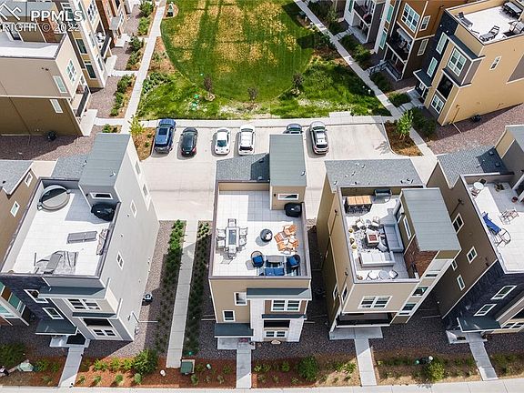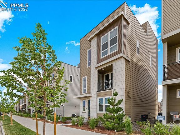Welcome home to this fantastic 3 bedroom + office, 3 bathroom, 2 car garage low maintenance home in Castle Rock! This home offers true low maintenance living with lots of green space to enjoy around your home! Conveniently located just minutes from I-25 and shopping! The main level on this home offers the entrance from your 2 car garage, a huge storage closet and a home office with beautiful barn door! The second level is for living and entertaining! The great room has beautiful laminate flooring in your kitchen, dining room and walkways. The huge open kitchen offers seating at the convenient kitchen island, tons of cabinets and counterspace for the chef in your family as well as a nice sized pantry, all appliances are included! Large dining space and carpeted living room lead to the first outdoor living area! The great deck faces west and has a storage closet attached! Upstairs you will find the light and bright master bedroom with attached master bath as well as a spacious closet! 2 additional niced sized bedrooms, laundry space and a full bath complete this level! One more level leads you to the roof top deck with stunning 365 views of Castle Rock and the Rocky Mountains! This home offers true Colorado living at its best! There is nothing left to do here but move in!