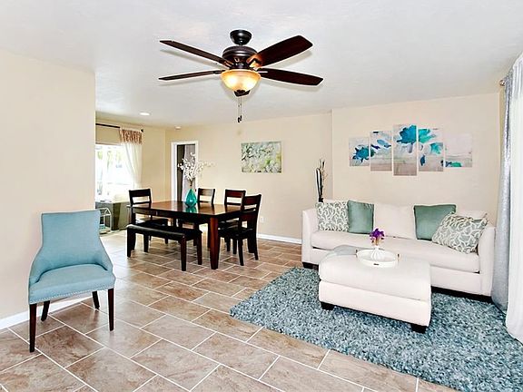 Splash around in your pool, toast marshmallows in your brick paved back yard patio with built in fire pit, or just sun along the huge patio and lanai when you make this home your new address. This picture perfect home has plank tile flooring, updated baths-guest bath opens to the pool for convenience. The Cooks kitchen has granite counters, glass tile back splash, stainless appliances, and breakfast bar. The family room has high ceilings too. This is a split plan home, all bedrooms have walk-in closets. The outside is meticulous, with tropical landscape, brick-paver borders all around the home and Decorative concrete overlay on the driveway.and a triple lot-great for boat storage or play yard for your family, you will enjoy so much outdoor space. Sliding glass doors from almost every room open to the huge patio and under truss lanai. Home has been re-piped and AC replaced in 2016. and UV light added to the air handler, New Water Heater, Impact Garage Door, Beautiful neighborhood, close to all conveniences & central to both bridges. Outside curb appeal to enjoy driving on to your new Decorative concrete overlay on the driveway. All assessments are paid in full.