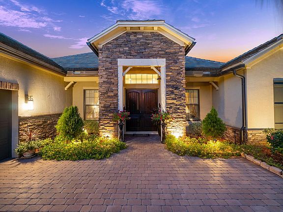 Incredible opportunity to own a Jamison model accented in stone w/ 3 car garage + lake view + heated pool! Discover the lifestyle of your dreams! The most popular estate series model lives open & airy, perfect for entertaining. 4 bedrooms, 3 baths + office! Chef's kitchen w/ wall oven, gas 5 burner cook top, french door refrigerator, prep island & planning center area. Master is a true retreat w/ spa-like bath. Walk-in shower w/ heavy frame-less enclosure and deep soaker tub. Crown molding & plantation shutters. Wood floors in bedrooms - no carpet! Enjoy dinner alfresco on your large covered lanai with retractable screen overlooking sparkling heated pool w/ bubblers.