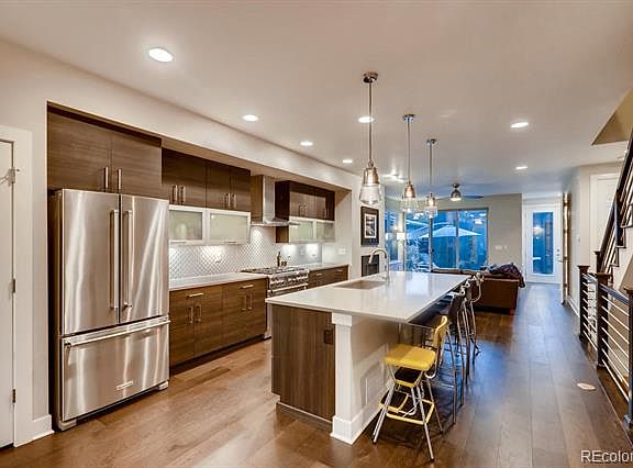 This is an absolutely beautiful, must see home in the heart of Sloans Lake! This amazing home is in the perfect location just minutes from Sloans Lake with easy access to the light rail, down town, and I-25. This recently constructed duplex was custom built by David Weekly Homes and features 4 bedrooms, 4 bathrooms, full open concept living area, fully fenced private backyard, and a fully finished basement with new carpet. In the kitchen you'll find custom cabinets, quartz countertops, and stainless steel appliances including large 6 burner Thermador gas stove. Upstairs you'll find three of the bedrooms including the master bath with large en suite with heated floors and a large second bathroom with double vanity. In the basement you'll find a large open rec room that features a bar rough in and another full bath and bedroom. Don't forget to check out the detached 2 car garage. Don't miss out, wont last long!