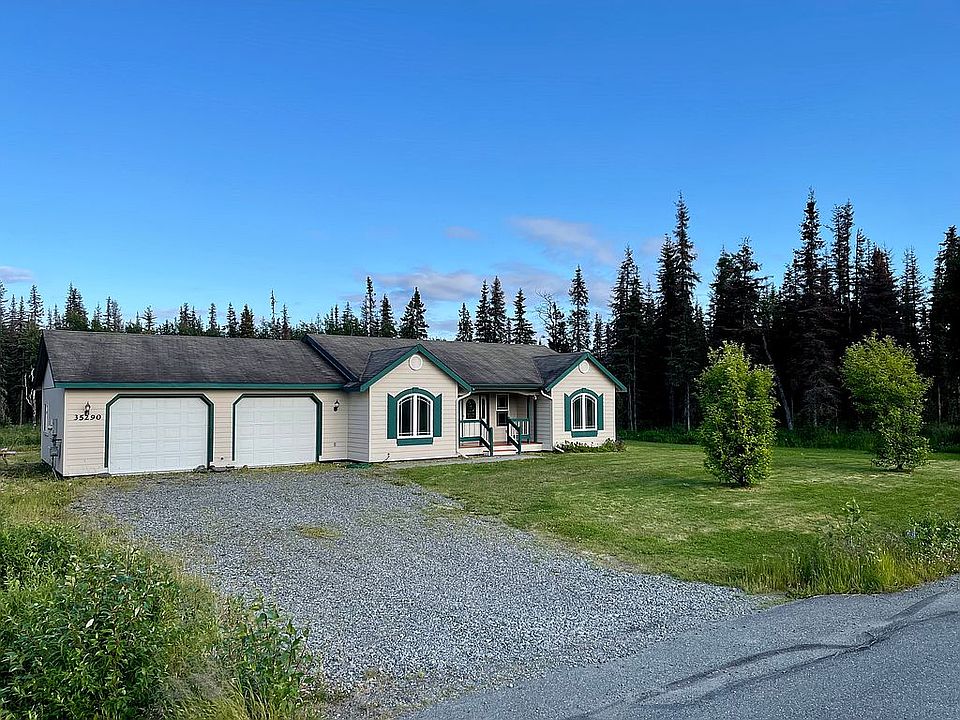 Built in 2003, this open concept 1,344 square foot ranch home with vaulted ceilings includes 3 bedrooms, 2 bathrooms, and an oversized 780 square foot two car garage, with lots of room for vehicles and hobbies. The open kitchen includes stainless steel appliances and a breakfast bar. The master includes a large walk in closet and the master bath offers a deep whirlpool tub, along with double sinks and a linen closet for storage. Placed on .92 acres, this home offers a large back deck, perfect for hosting get togethers and summer bbqs, that overlooks the huge private backyard which has already been cleared of most trees for hassle free enjoyment. This home is move in ready and has a spacious crawl space for all of your storage needs! *Gravel driveway has been redone since photos were taken* $309,900 OBO Please call 907-252-7455 to schedule a showing.