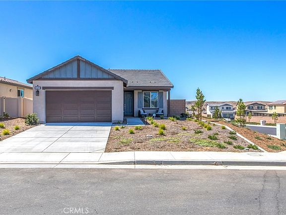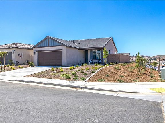 Welcome to your dream home in the prestigious gated community of Crown at Tournament Hills! This nearly brand-new Bristol floorplan offers the perfect blend of modern design and convenience, all without the wait of a new build. With only 7 months of occupancy, this 3-bedroom, 2-bathroom gem spans 1,541 square feet of open-concept living space, ideal for today's lifestyle. Situated on a desirable corner lot, this home is just a short stroll away from the community pool, making it perfect for those who enjoy outdoor leisure. Energy efficiency is a key feature, with 8 fully paid-for solar panels significantly reducing your utility costs. The home comes complete with a new refrigerator, washer, and dryer, making your move-in seamless. All windows are fitted with coverings, eliminating one of the common expenses associated with purchasing a new home. The backyard is a blank canvas, waiting for you to create your own personal oasis. Don't miss the opportunity to own this highly sought-after floorplan in Crown at Tournament Hills—modern living, energy savings, and a prime location all in one!