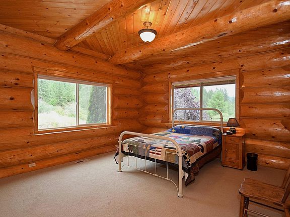 Spectacular and custom log home with breath taking views of Lake Roosevelt. Located on 7 acres, main garage is 30 x 33 with a 14 x 30 unfinished bonus room above and a second 25 x 27 shop, deer fencing, water features, fruit trees, raspberry bushes, roses, raised flower beds, lawn and sprinkler system. Inside there are 3 bedrooms, 3 bathrooms, vaulted ceilings with fans, wood floors, wood stove, remote control blinds, located by camp grounds and boat launch. Sellers are very motivated so bring offers now!