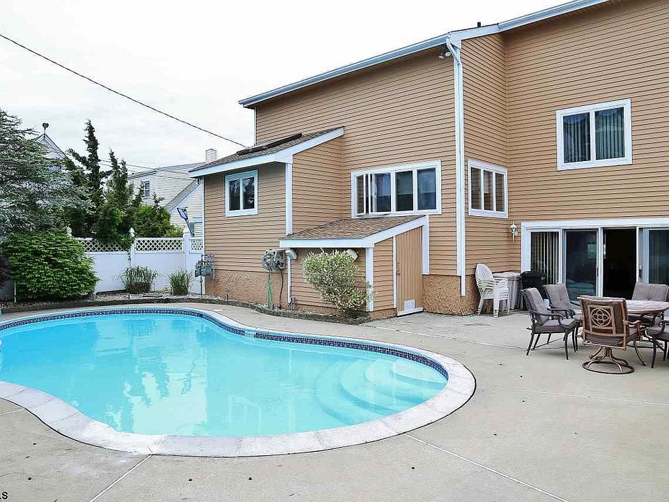 Wonderful, very spacious home located so very close to the beach! Great family home and also suitable for guests... plenty of floors allowing for privacy. Fun times abound in the summer with the glistening in-ground pool and white sand beach being just steps away. The interior features a living room, formal dining room, very nice eat-in kitchen, and a separate and spacious den complete with a cozy fireplace. Make this home yours and begin to enjoy your life in beautiful Brigantine!
