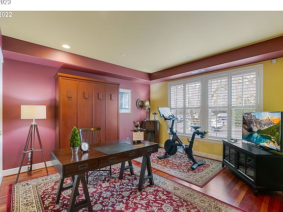 Picture yourself living in the heart of the highly desirable downtown Lake Oswego where you can walk to restaurants, farmers market, grocery stores, coffee shops and more! Beautiful hardwood floors on the main and lower level with high ceilings. Lots of light. Rich wood cabinets throughout kitchen. Stainless appliances and gas stove. Entry level office/bedroom, built in bookcases and dedicated bathroom. Both bedrooms on the upper level have ensuite bathrooms. Large two car garage. Two balconies. Great rental opportunity as well. Previous tenants were paying $5500/month. Highly regarded townhome community in a sought after and established quiet neighborhood!