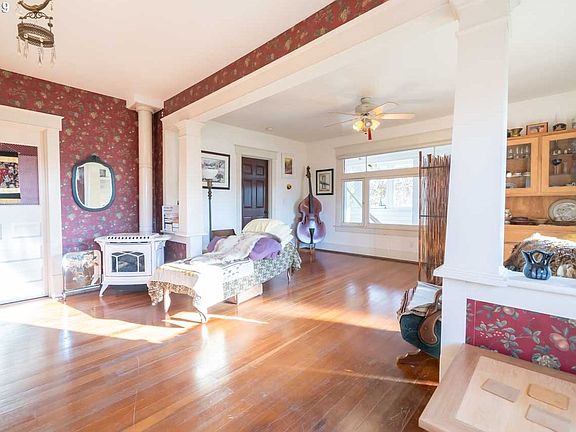 1926 home & a wonderful location! Timeless features like the old-fashioned sun-porch, painted wd floors in kitchen along w/an vintage gas cookstove replica, lovely orig fir floors & clawfoot tub. 2 gas heating stoves. Plumbing & wiring updated & new foundation put in approx 20 yrs ago. Landscaping has been allowed to mature for privacy. 20X60 woodworking shop plus portable RV cover. Oversized garage has utility room with 1/2 bath.