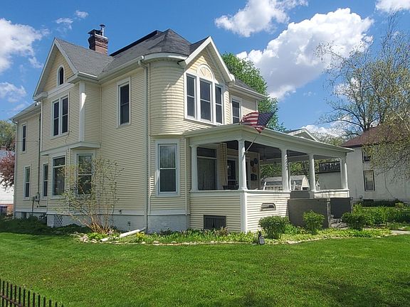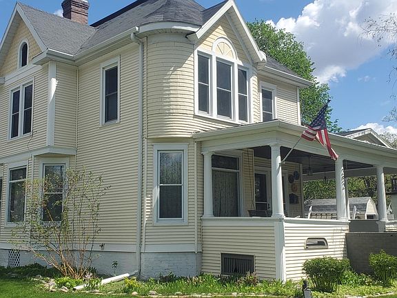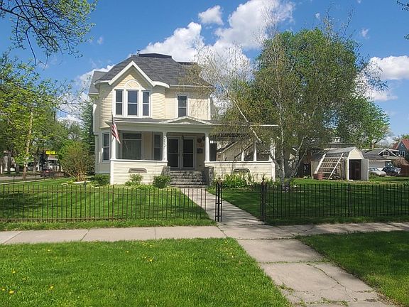 Impressive 1899's character home has everything you've been looking for, situated on corner lot in desirable location nearby island park! Roughly 4,000 sqft, 4 bedrooms, 3 bathrooms, and a 3 stall garage featuring radiant heat & dual electric heat for the ideal workshop/mechanic space! It also has a ''man cave or possible office'' located above that is sure to impress! Front porch is perfect for lounging and enjoying a cup of coffee in the warmer months..with spring in the air you can start to see the flowers growing around property. Enter into the stunning foyer to the main floor that includes amazing original wood work, cabinets, and flooring with most original lighting as well (Additional vintage lights in basement should new buyer desire to give the house even more historic charm.) Updated cabinets and flooring in kitchen along with entry, back mop closet.
