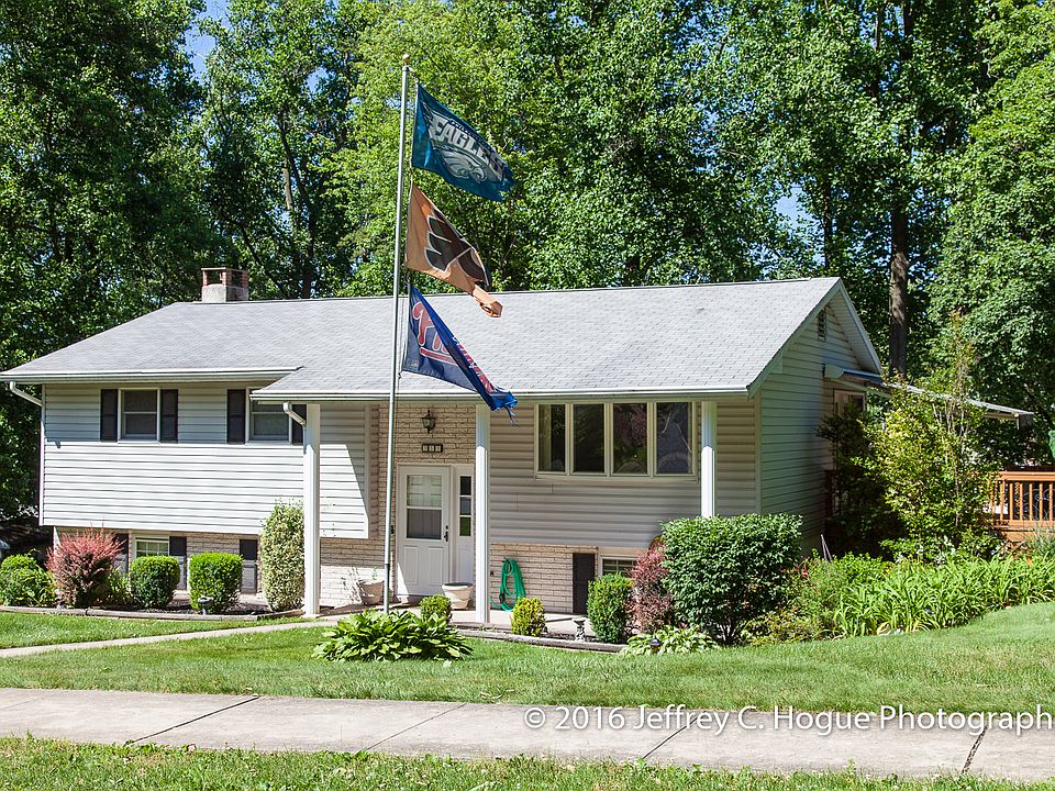 This Bi-Level home is nicely situated on a corner lot with a unique setting. On one side you have a traditional housing neighborhood and on the other are homes on larger wooded lots. The setting is both convenient and tranquil. there is a wood deck just outside the breakfast nook that has a Sun Setter awning and takes full advantage of the tranquil setting. There is also a large rear covered concrete patio that offers additional outdoor recreation and relaxation space. Indoors there is nicely sized kitchen with a breakfast bar and nook. The living room has laminate floors, ceiling fan and a large bay window. The lower level is where you will find the family room which has a brick fireplace and sliding doors to the rear patio and yard. The master bedroom is located on the main level and is accompanied by two other bedrooms and a fill bath. The other two bedrooms are in the lower level along with a combination full bath and laundry area. There is also an over sized one-car garage, driveway and street parking. Please note that this a bi-level design. This type of home has a main level and a lower level, both of which are finished, heated and air conditioned. There is no basement level in this type of design. The finished square footage of the two levels is 1,630. This is a true 5 bedroom home that is looking for a new owner. Enjoy the home photos and consider seeing it for yourself. Call listing agent Jeffrey Hogue for a showing 484-325-0111.