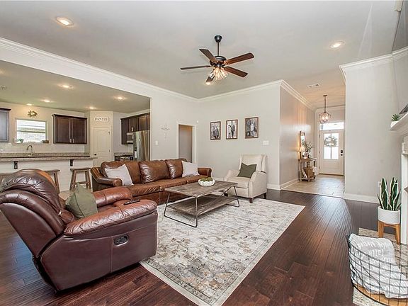 JUST WOW! THIS BEAUTIFUL HOME IN THE ESTABLISHED PINE ISLAND NEIGHBORHOOD OFFERS AN OPEN/SPLIT FLOORPLAN WITH 4 BEDROOMS AND 2 BATHS. THE INTERIOR BOASTS WITH WOOD FLOORS IN LIVING RM & CERAMIC TILE IN WET AREAS, CROWN MOULDING, BEAUTIFUL BIRCH CABINETS, GAS FIREPLACE, 3CM SLAB GRANITE COUNTERTOPS IN KITCHEN & BATHS, AND A TANKLESS WATER HEATER. PRIMARY SUITE FEATURES A GARDEN TUB & SEPARATE SHOWER IN BATH WITH A LARGE WALK IN CLOSET. FULL 2 CAR GARAGE, RADIANT BARRIER DECKING IN ATTIC, FENCED BACKYARD, AND IT'S LOCATED IN FLOOD ZONE X.