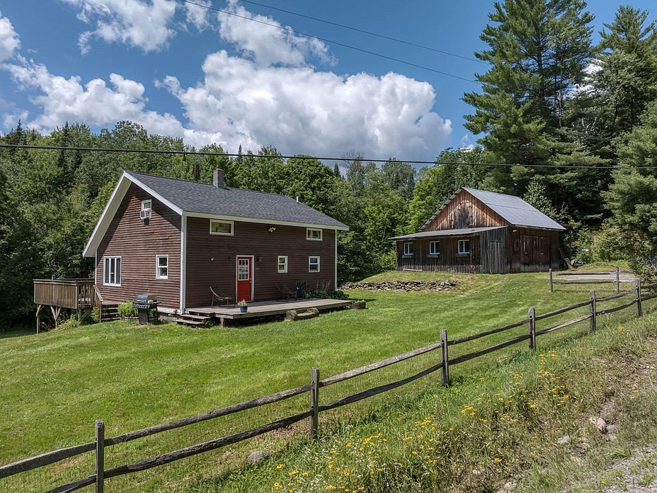 Fishing poles and waders lean against a tree, while shadows cast from the fire pit dance along the shoreline of the babbling brook. The moon and stars illuminate the large open lawn and spill into the forest, from which adventures and memories had been made throughout the day. Nestled above the river, this charming 1,965 sq. ft. saltbox home offers three bedrooms and one bathroom on a sprawling 10-acre lot, perfect for roaming and play. The property features an impressive 864 sq. ft. garage with a covered porch, ideal for storing your outdoor gear and enjoying the mountain air. Recent updates include a new roof and septic system, ensuring peace of mind for the new owner. The unfinished, walkout basement provides ample potential for expansion and customization to suit your lifestyle and needs. Here, you will find a generous floor plan, practical features and a bucolic setting that will be hard to beat. Though this property offers a tranquil, rural feel, it is conveniently located just 10 minutes from Craftsbury, 15 minutes from Morrisville, 20 minutes from Hardwick, and 30 minutes from Stowe. Embrace the best of both worlds in this Vermont oasis, where your mountain lifestyle awaits.