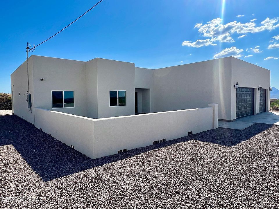 A most desireable floorplan! This BRAND NEW HOME just completed 6/29/23 is ready for the most discriminating buyer. 1.38 acres gives the privacy required to maintain the impeccable views this property offers of the Tumacacori & Atascosa Mountains looking into Mexico! 3 car oversized garage will fit all of your toys and trucks! There is space for an RV on the side as well although a hookup has not been installed. Enter the grand courtyard to the front patio into the Great room. Kitchen offers Solid granite countertops, White cabinets with stainless steel pulls & soft close drawers. Spice rack built in! Modern Farmhouse style fixtures with LED lighting! Nearly full length patio to enjoy your beverages as the sun sets. You literally can see the Milky Way at night the sky is so clear. Tons of closet space allows those packrats to live clean looking like a minimalist. As you enter from the garage there is a Powder room for guests and an area to remove shoes (mud room). Walk in Pantry next to the kitchen. Kitchen also offers an island & upgraded Stainless steel LG appliances. The seller did not skimp on these! HUGE Laundry room as well! Primary bedroom is on on side of this split floorplan home that offers views for miles from the windows. Huge Bathroom with His and hers sinks and matching walk in closets. No need to argue about who gets the bigger closet as they are exactly the same size. Custom tile work in the shower! On the other side of the home are 3 more bedrooms, more closets and a full guest bathroom with a tub/shower combo & more custom tile. This is truly a masterpiece in Rio Rico! This one is PRICED TO SELL! Come and get it before it's gone. Home comes with a 2 year builder warranty and the manufactures warranties as well on all major appliances. Inquire about optional school districts.