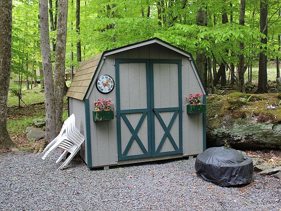 Vinyl sided chalet in a four season amenity filled community in The Northern Poconos, just over two hours from the NYC and Philadelphia Areas. This 3 bedroom 2 bath home has a loft and a large sunroom for additional space. There's an open floor plan, knotty pine kitchen cabinets, knotty pine ceilings, hardwood floors, a brick fireplace, a read deck and shed. The amenities include lakes, beaches, pools, clubhouse with restaurant and pub, golf course, ski hill, tennis, indoor recreation complex with tennis/fitness center/arcade and more, basketball courts, ball fields, children's playground, miniature golf, walking trails, arts and crafts, a great recreation program including day camp for kids, campground, 24 hour security, gated access, must have an appointment with an agent to tour., Beds Description: 2+BED 2nd, Beds Description: 1Bed1st, Baths: 1 Bath Level 1, Baths: 1 Bath Level 2, Sewer: WS Comm Central
